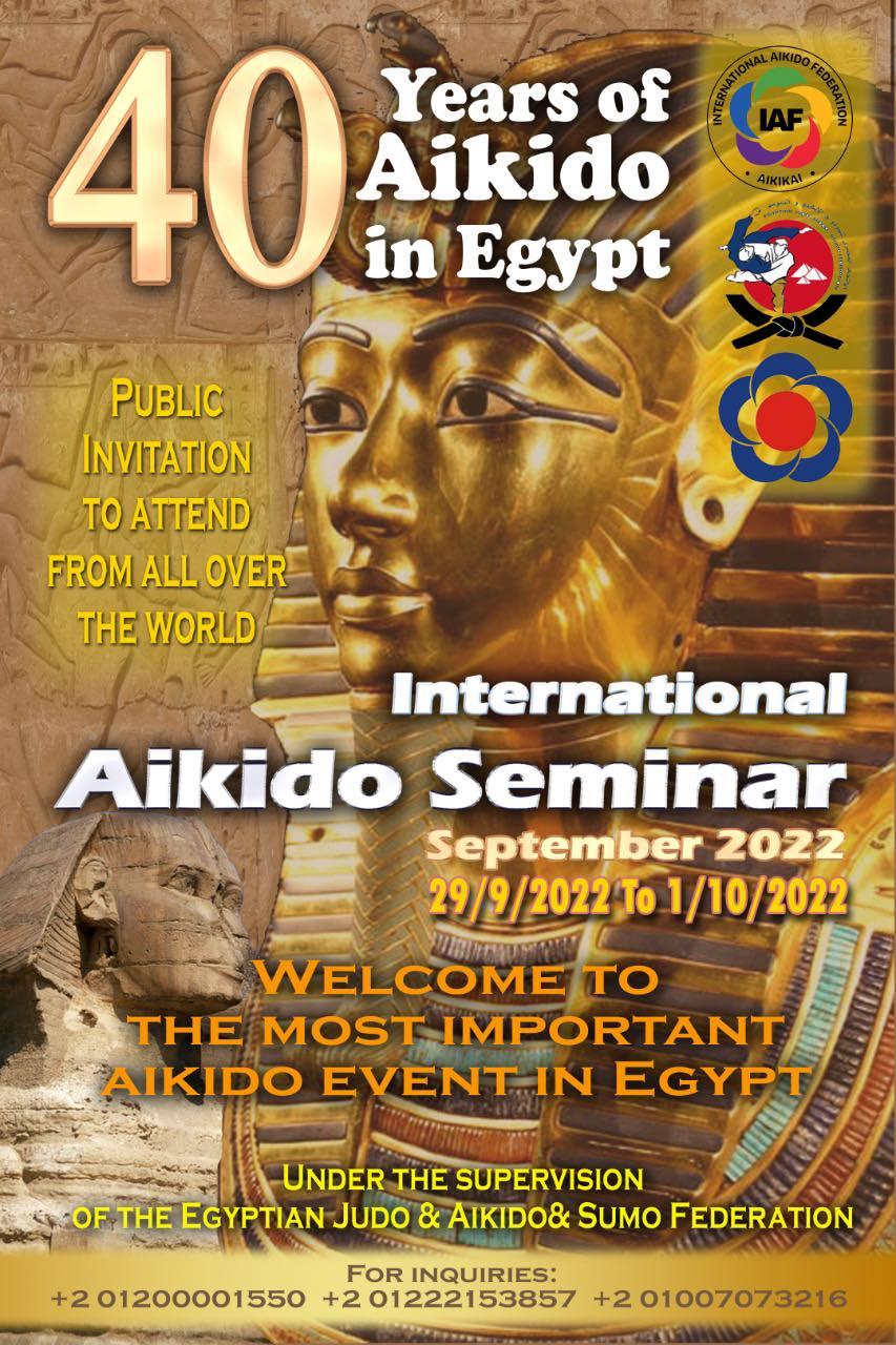 تحت مظله الإتحاد المصرى للجودو والايكيدو والسومو بقيادة رئيس لجنة الايكيدو ايكيكاى بالاتحاد المصرى ورئيس الجمعيه المصرية للايكيدو الكابتن محمد السيد عمر يقام السيمينار الدولى احتفالا بمرور 40 سنة لوجود لعبة الايكيدو بمصر، وذلك يوم 29 سبتمبر الجارى حتى 1 أكتوبر وذلك بالمركز الاوليمبى بالمعادى وذلك فى تمام السابعة مساءا.