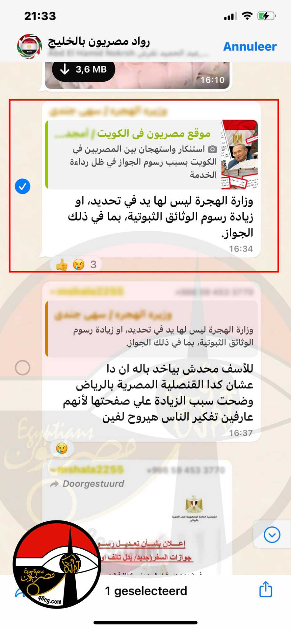 و نرصد بعض من ردود وأراء المصريين في الخارج على مستوى العالم من الشرق إلى الغرب وإليكم بعض من صور هذه الآراء والتي رأينا أن لا ننشر اسمائهم لحماية الخصوصية واللافت فيها أن وزارة الهجرة تخلي مسئوليهتا عن هذه الزيادة في تعليق نقل عن معالي وزيرة الهجرة على الخبر السابق..