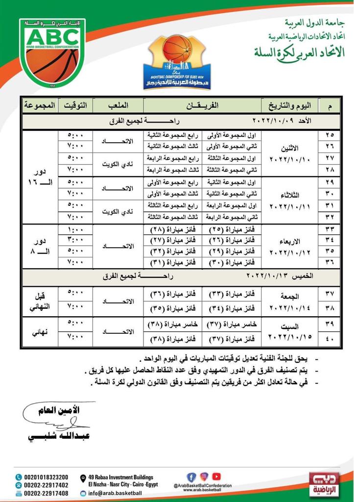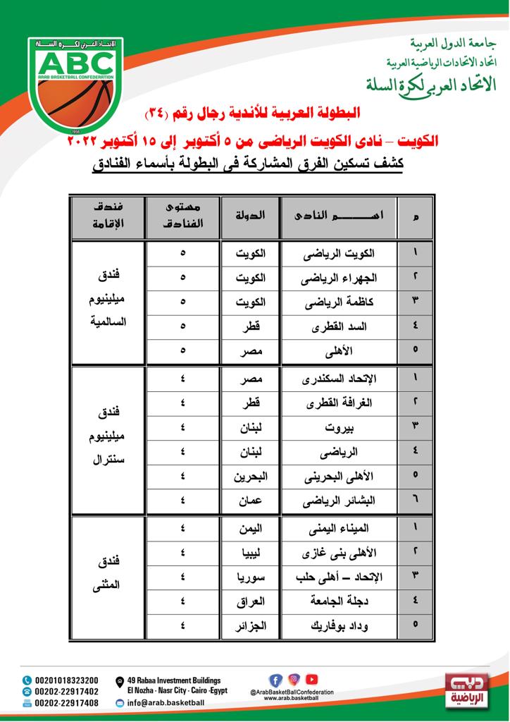 من المنتظر أن يساند عدد كبير من أبناء الجالية المصرية بالكويت فريقا الاهلي المصري والاتحاد السكندري في البطولة العربية للأندية لكرة السلة التي تبدأ في الكويت من 5 إلى 15 أكتوبر