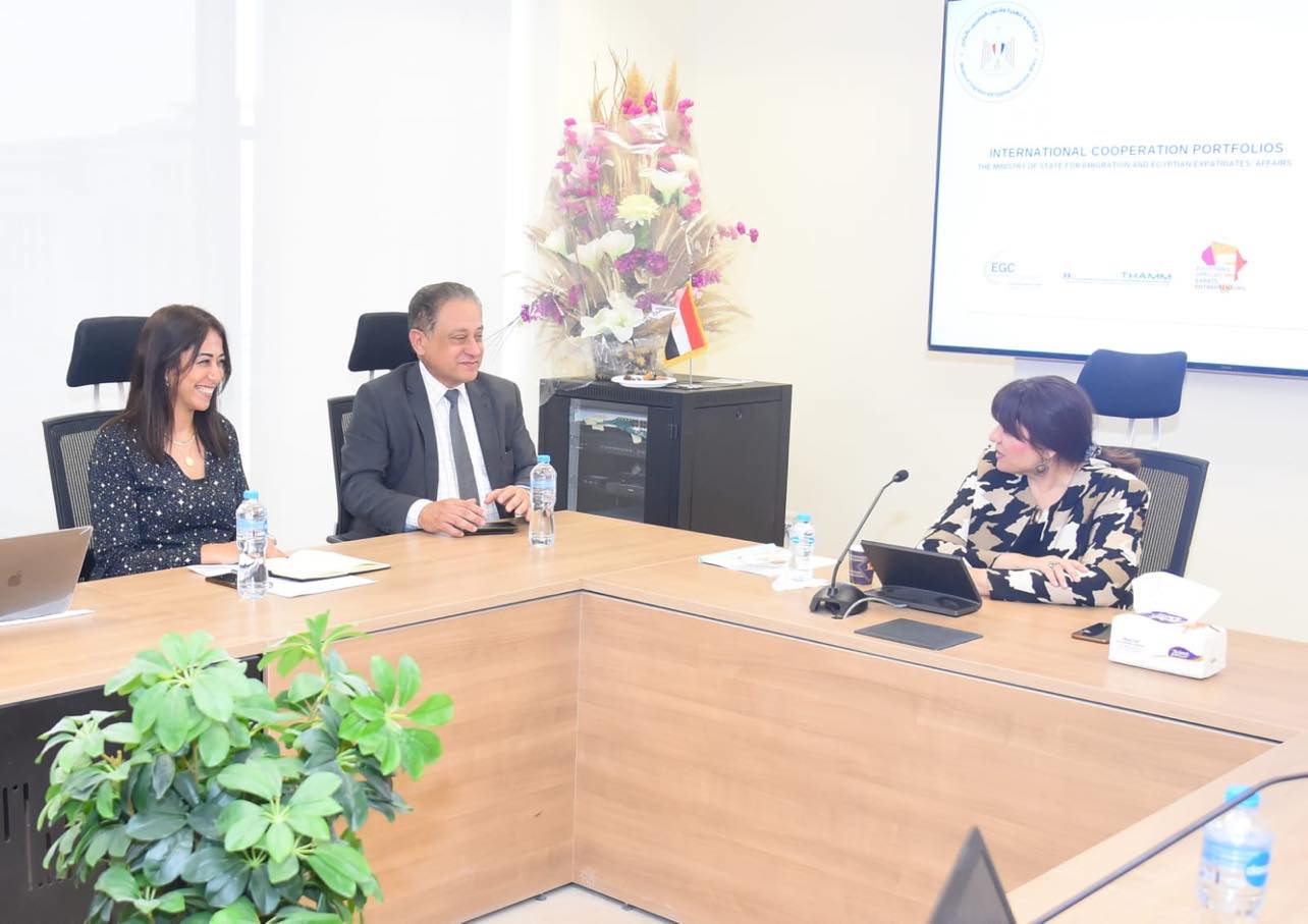 عقدت السفيرة سها جندي وزيرة الدولة للهجرة وشئون المصريين بالخارج، اجتماعا مع السفير محمد خيرت مساعد وزيرة الهجرة للتعاون الدولي، وفريق عمل المركز المصري الألماني للوظائف والهجرة وإعادة الادماج التابع لوزارة الهجرة، وذلك بمقر الوزارة بالعاصمة الادارية الجديدة ،لمتابعة أبزر نتائج مشروعات التعاون الدولي الخاصة بالوزارة خلال الفترة الماضية.