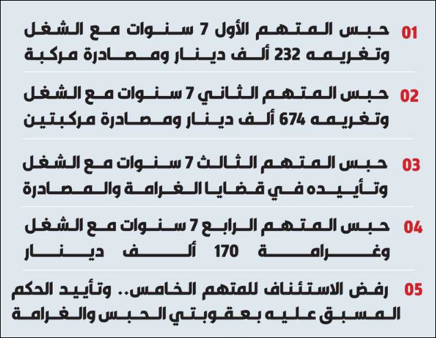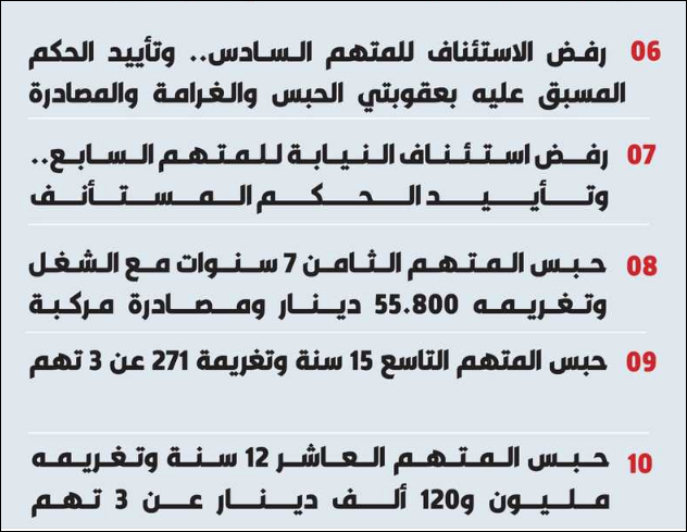 قضت محكمة الاستئناف بالكويت في قضية رشوة القضاة بحبس 7 قضاة من 7 سنوات إلى 15 سنة وعزلهم من الوظيفة ومصادرة مركبات منهم تلقوها كهدايا، وقضت ببراءة قاض واحد.
