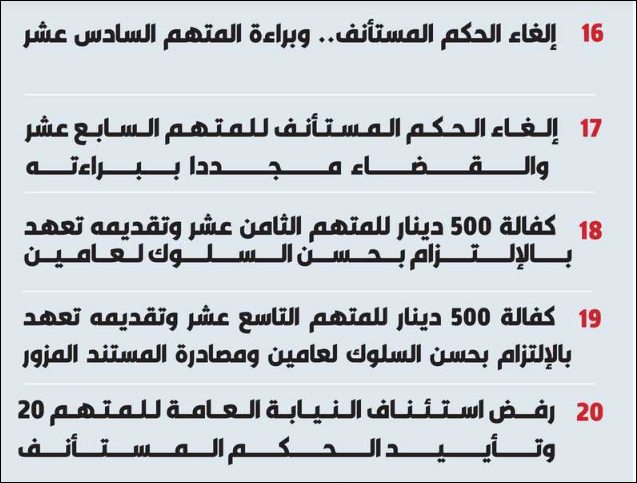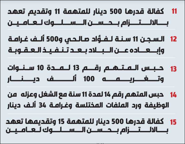 كما قضت المحكمة بالحبس لسنوات مختلفة بحق موظفين وموظفات بوزارة العدل وعزلهم من الوظيفة ، وحبس رجال أعمال، كما قضت بحبس آخرين، كما قضت ببراءة اخرين.وكانت النيابة العامة خلال تحقيقاتها في ثاني قضايا الإيراني صالحي، قد اكتشفت وجود تواصل مع 10 قضاة، حيث أحالت قاضيين إلى التأديب، فيما أحالت 8 قضاة إلى محكمة الجنايات كما أحالت 3 محامين وصالحي و 15 آخرين للمحاكمة.