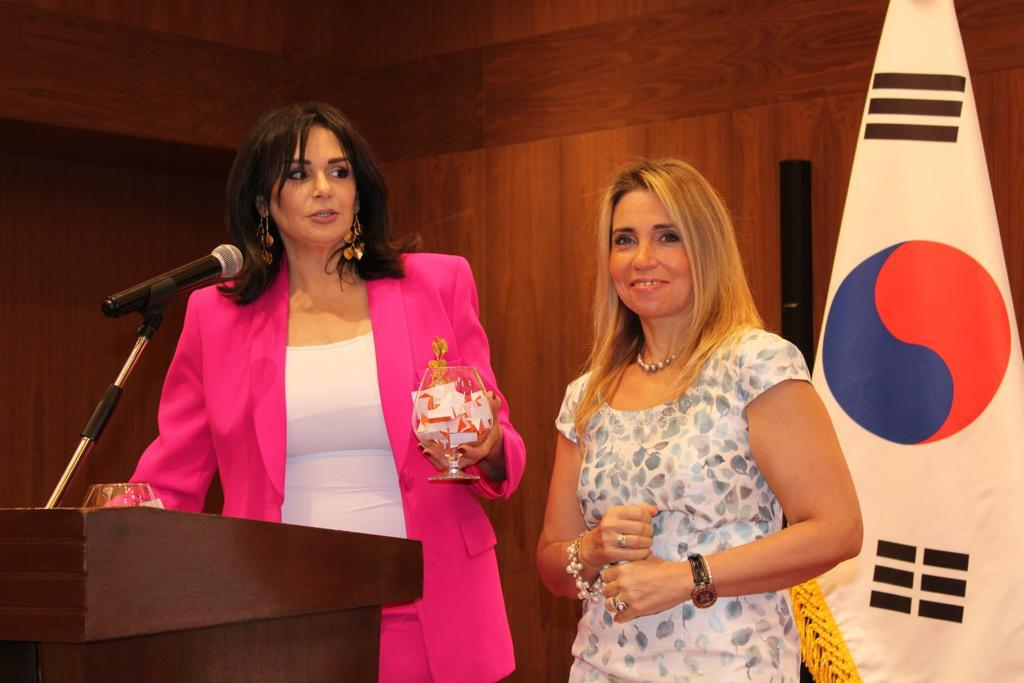 وفي الختام، قدمت غادة شوقي درعا تذكارية للسفير الكوري وحرمه وشكرته على كلمته وتنظيم اليوم المميز الذي اسعد الحضور.