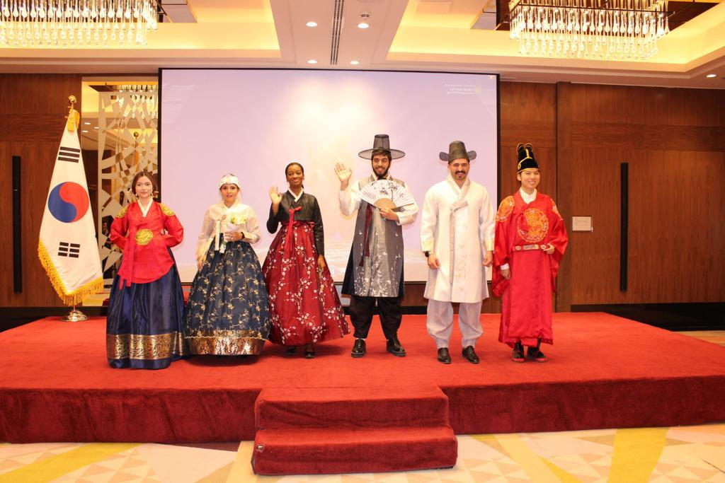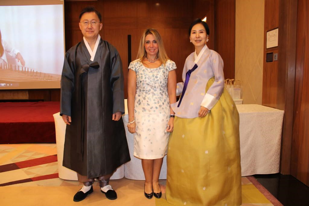 من جانبه، ألقى سفير جمهورية كوريا لدى الكويت تشونغ بيونغ-ها كلمة تقدم خلالها بخالص الشكر والتقدير لرئيسة وأعضاء مجلس إدارة مجموعة المرأة الدولية على تنظيم الفعالية، معربا عن سعادته بتقديم بعض الجوانب المتعلقة بالثقافة الكورية بما فيها «الهانبوك» وهو الزي التقليدي الكوري الذي يعكس جمال الماضي وجزءا مهما من نمط الحياة التراثية، آملا أن يتيح العرض المرئي أسرار ونصائح عالم الجمال الكوري الحديث «K-beauty» الذي قدمه طبيب التجميل الكوري فرصة للاطلاع على لمحات من الجمال الكوري في الوقت الحالي. وتخلل الفعالية عرض فيلم قصير عن كوريا بعنوان «خمسة انطباعات عن كوريا» الذي يسلط الضوء على جوانب مختلفة للحياة مثل حياة المدينة، والموسيقى، والطعام وغيرها، وبعد ذلك، قام جراح التجميل الكوري د.جونغهيون كيم، الذي يعمل في مركز «سول ديرما» في الكويت وزوجته د.سونهيي هير وهي طبيبة ايضا، بتقديم نصائح للمشاركين عن الجمال الكوري إضافة الى معلومات طبية مفيدة عن الروتين اليومي الضروري للعناية بالبشرة، إضافة الى عرض للأزياء التقليدية «الهانبوك» التي تتميز بالألوان المختلقة والخطوط الناعمة، وأتيحت الفرصة لبعض المشاركين لتجربة ارتداء الهانبوك والتقاط الصور التذكارية مع خلفية لمناظر طبيعية جميلة في كوريا.