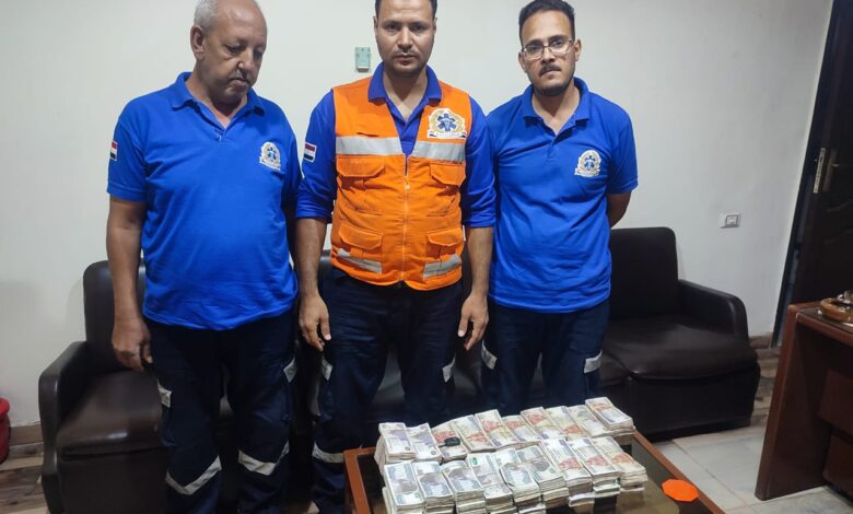 عثر مسعف، وسائق بهيئة الإسعاف المصرية فى محافظة أسيوط، على مبلغ مليون و27 ألف جنيه على إثر حادث انقلاب سيارة ملاكى على الطريق الصحراوى بحرى مدخل منفلوط بدائرة مركز منفلوط، وقاما على الفور بتسليم المبلغ لقسم شرطة منفلوط دائرة الواقعة، تمهيدا لتسليمه لأسرة المتوفى بعد استكمال الإجراءات القانونية.