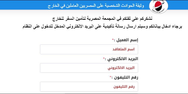 للإشتراك الضغط علي الرابط أدناه للستجيل في وثيقة التأمين :