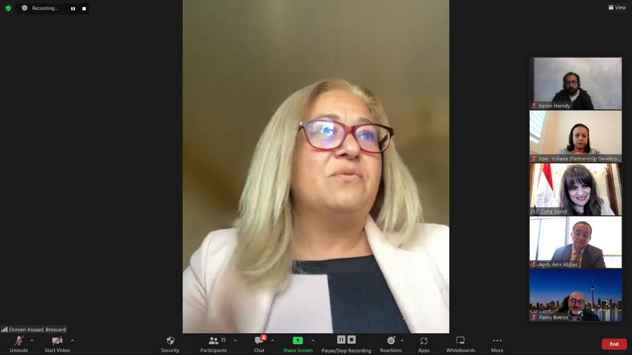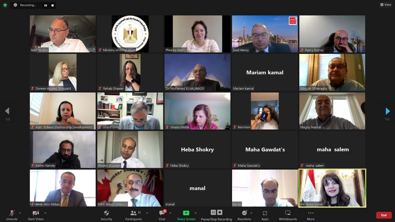 السفيرة سها جندي تعقد اجتماعا برموز الجالية المصرية في كندا عبر تطبيق زووم