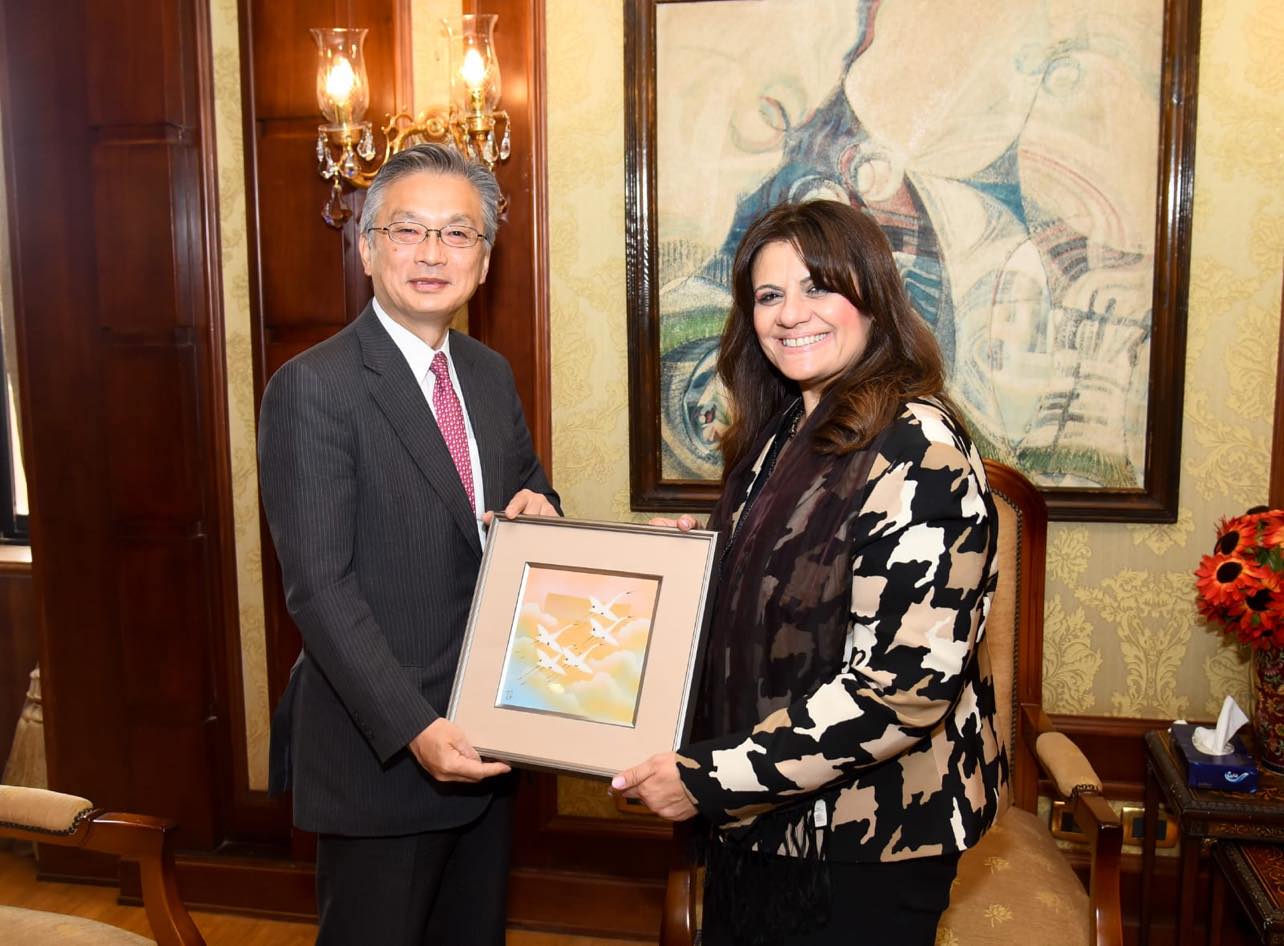 السفير الياباني يقدم هدية تذكارية لوزيرة الهجرة تكريما لها وتقديرا لجهودها