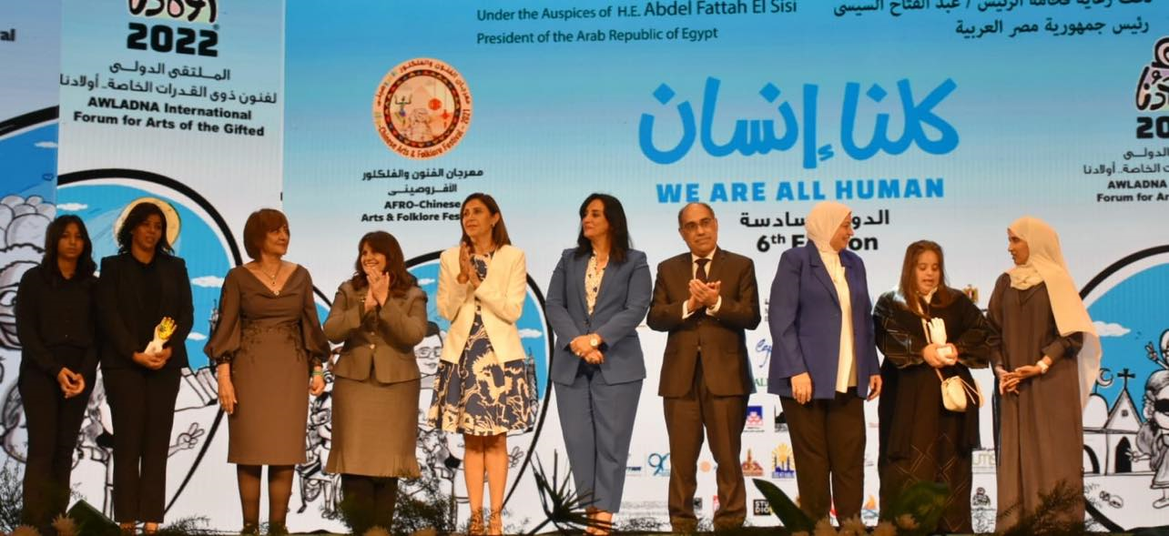 وأشادت الوزيرة بجهود الأستاذة سهير عبد القادر رئيس مؤسسة أولادنا والتي تقف وفريق العمل وراء مستوى الإبداع والتميز الذي برع فيه الأولاد المشاركون من ذوي القدرات الخاصة حول العالم، معتبرة أن مهرجان أولادنا محفل سنوي للإبداع الفني في حب مصر، التي استضافت على أرضها الكثير من الحضارات على مر التاريخ، وما تزال معالمها تشهد على ذوق رفيع في الفنون المختلفة.