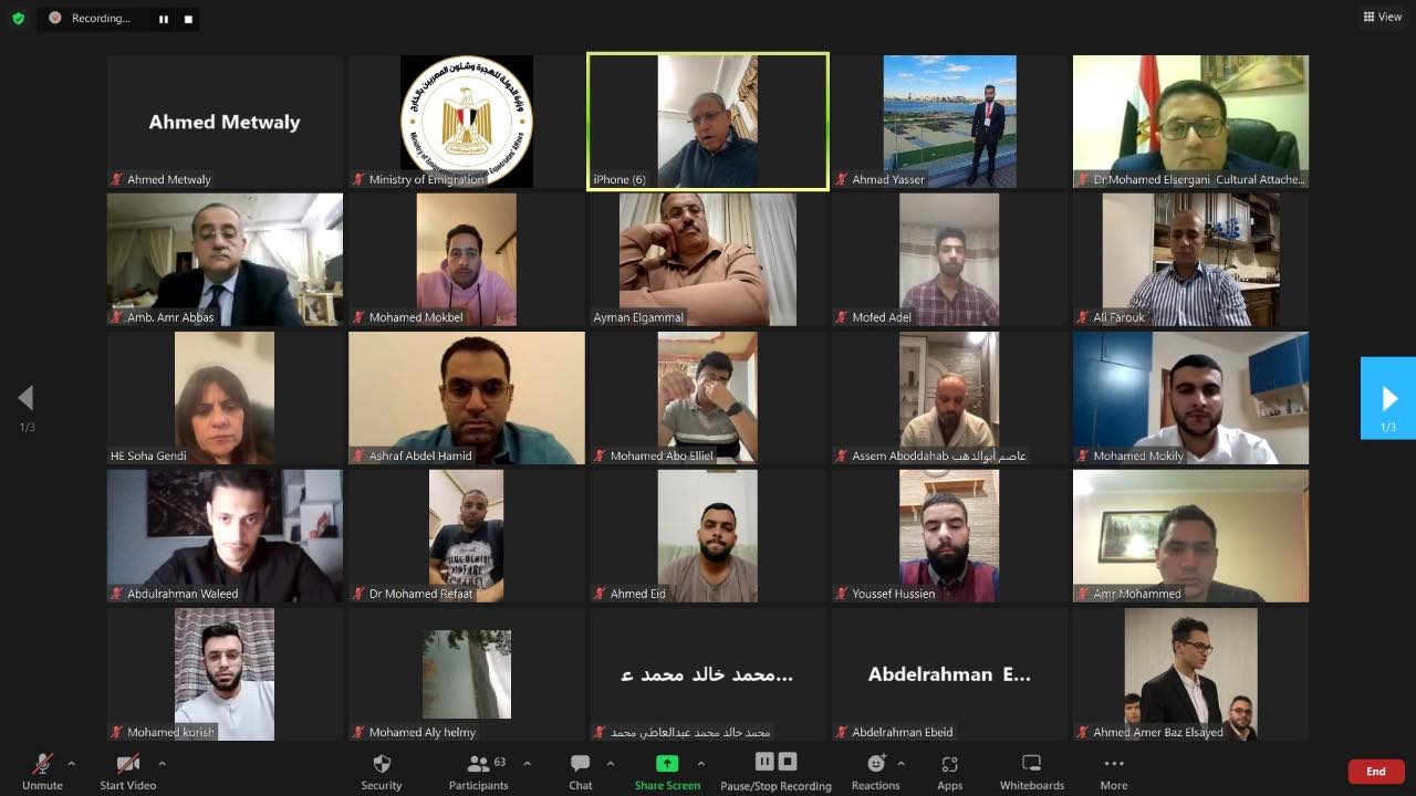 واختتمت السفيرة سها جندي اللقاء بالتأكيد على ان مصر تقف في صف أبنائها، وتحرص على مستقبلهم في ظل الجمهورية الجديدة، وتوجيه القيادة السياسية بتلبية احتياجات مواطنينا بالخارج.
