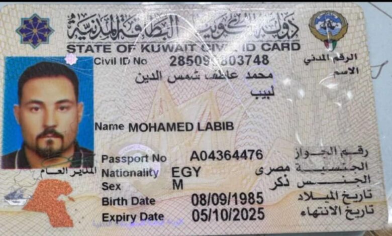 تم العثور على بطاقة مدنية لمصري باسم محمد عاطف شمس الدين على صاحبها الاتصال على رقم 97968567