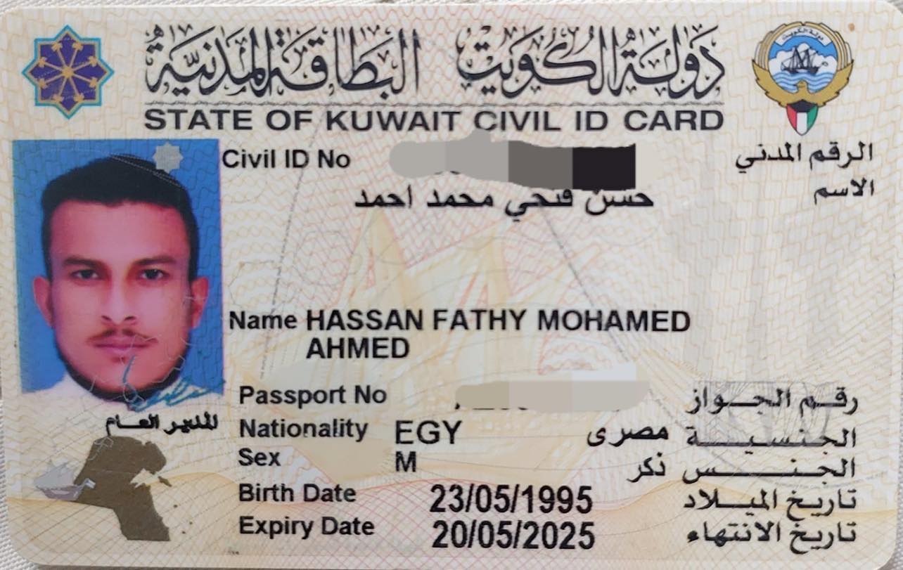 العثور على بطاقه مدنيه لشخص مصري في الكويت يدعى : حسن فتحي محمد أحمد