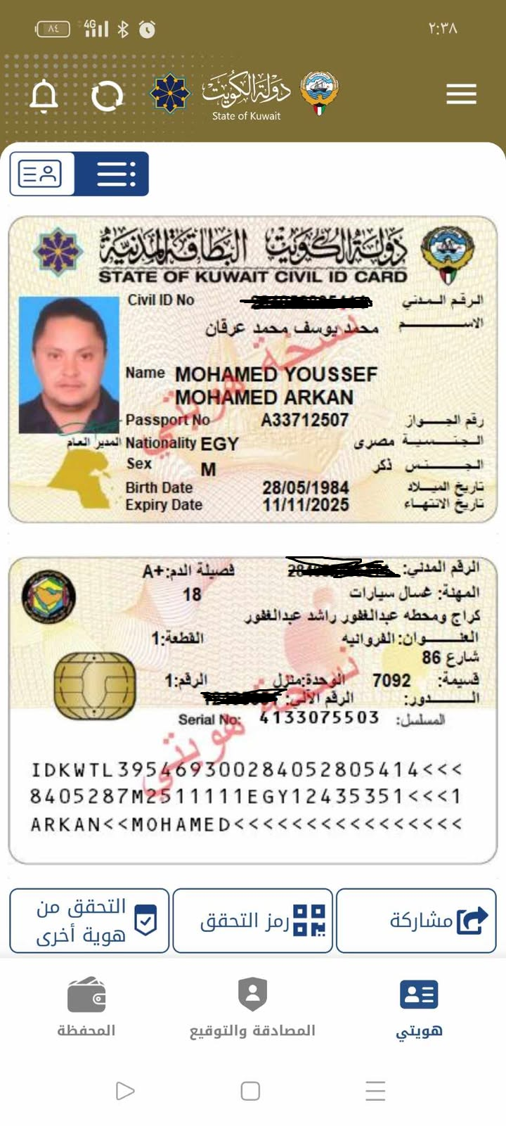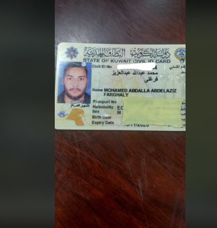تم العثور على بطاقة مدنية باسم محمد عبدالله عبدالعزيز فرغلي