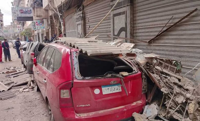 تفاصيل تحطم 3 سيارات بعد سقوط جزء من عقار فى الدقهلية