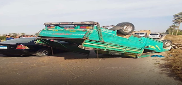 حادث جديد على إقليمي المنوفية.. انقلاب سيارة فاكهة قرب موقع مأساة الـ19 فتاة