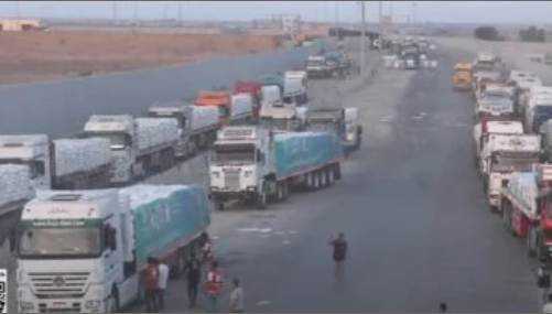 قوافل الإغاثة المصرية تواصل عبورها نحو غزة عبر معبر كرم أبو سالم