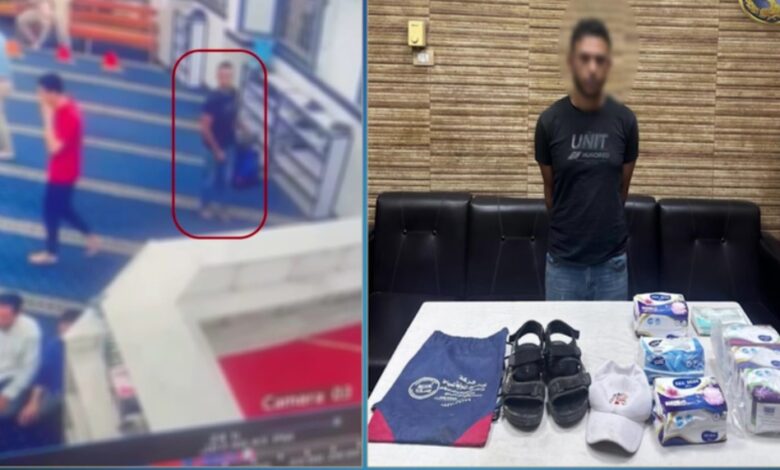 ضبط لص سرق حقيبة وأحذية المصلين من داخل مسجد بالفيوم