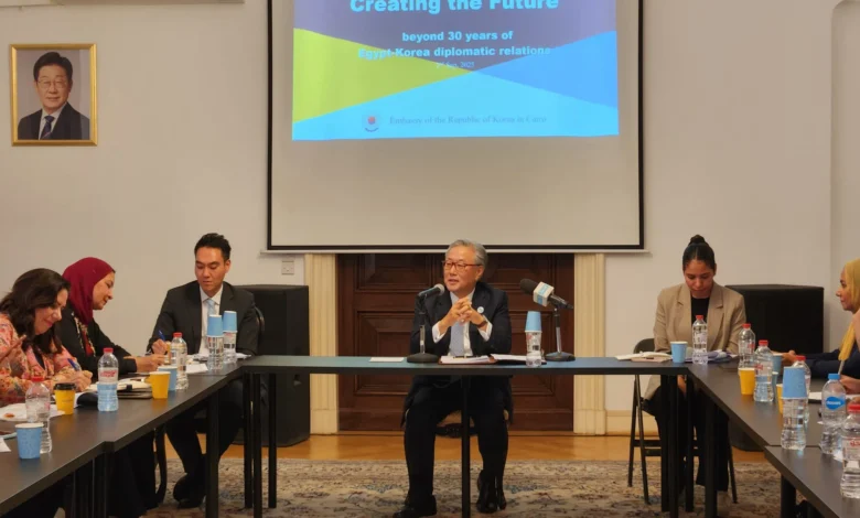 وفى صالون صحفى نظمه فى السفارة الكورية بالقاهرة، قال السفير إنه على مدار الثلاثين عامًا الماضية، بنت كوريا ومصر شراكة متينة قائمة على الاحترام المتبادل، وازدادت العلاقات قوةً وتنوعًا في جميع المجالات، بما في ذلك السياسة والاقتصاد والدفاع والثقافة وغيرها.