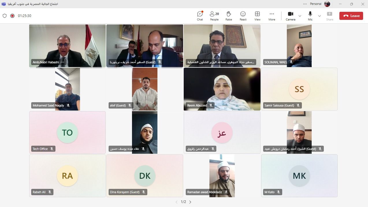 في إطار حرص الدولة على تعزيز جسور التواصل مع أبنائها في مختلف أنحاء العالم، عقد السفير نبيل حبشي نائب وزير الخارجية والهجرة وشئون المصريين بالخارج لقاءً افتراضياً مع أبناء الجالية المصرية في كل من جنوب أفريقيا وبتسوانا وليسوتو يوم الأحد الموافق ٢٨ سبتمبر ٢٠٢٥، وذلك بمشاركة السفير حداد الجوهري مساعد وزير الخارجية للشئون القنصلية والمصريين في الخارج، والسفير أحمد علي شريف سفير جمهورية مصر العربية في جنوب أفريقيا.