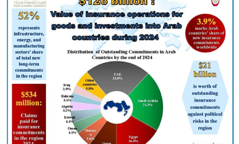 “ضمان الاستثمار”: 126 مليار دولار قيمة عمليات تأمين السلع والاستثمار والتمويل الوارد إلى الدول العربية خلال 2024