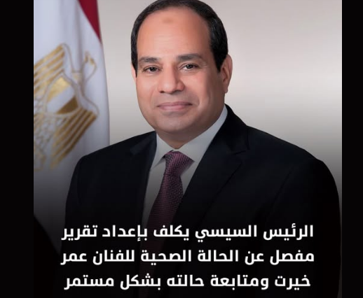 وجه الرئيس السيسي نائب رئيس مجلس الوزراء ووزير الصحة والسكان بمتابعة الحالة الصحية للفنان عمر خيرت وتقديم كافة أشكال الدعم الطبي اللازم له بما يضمن توفير الرعاية الصحية المتكاملة