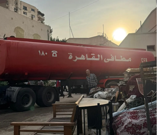 استعانت الحماية المدنية بكل خزانات المياة لديها وبسيارات مياه الشرب والصرف الصحي بالجيزة لإمدادها بالمياه للسيطرة على حريق ستدويو مصر في المريوطية.