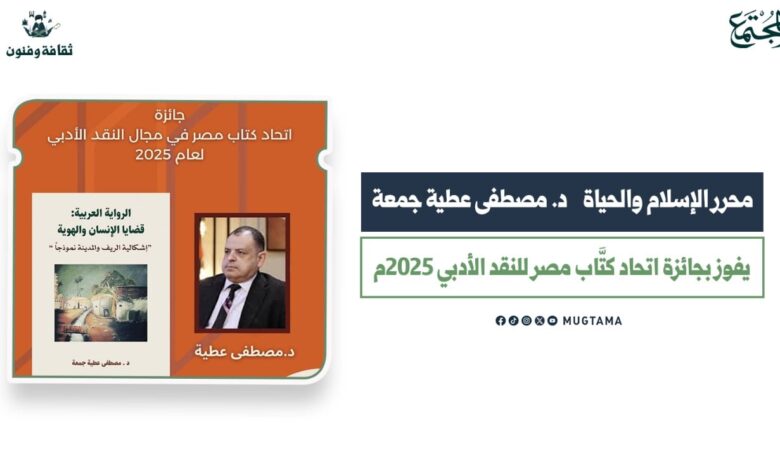 أعلن اتحاد كتَّاب مصر عن فوز الكتاب النقدي المتميز «الرواية العربية وقضايا الإنسان والهوية: إشكالية الريف والمدينة نموذجاً» للكاتب والباحث أ.د. مصطفى عطية جمعة بجائزة الاتحاد في مجال النقد الأدبي العام لعام 2025م.