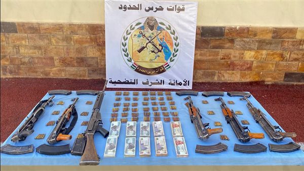 وفى توقيت متزامن نجحت قوات حرس الحدود على الاتجاه الاستراتيجي الغربي فى إحباط محاولات لتهريب كميات من الأسلحة والذخائر حيث تم ضبط عدد ( 11 ) بندقية آلية ، و( 30 ) بندقية خرطوش ، و( 1 ) مسدس و( 33 ) خزنة ، و( 4 ) تلسكوب وعدد ( 443 ) طلقة ، و( 12800 ) قرص مخدر .