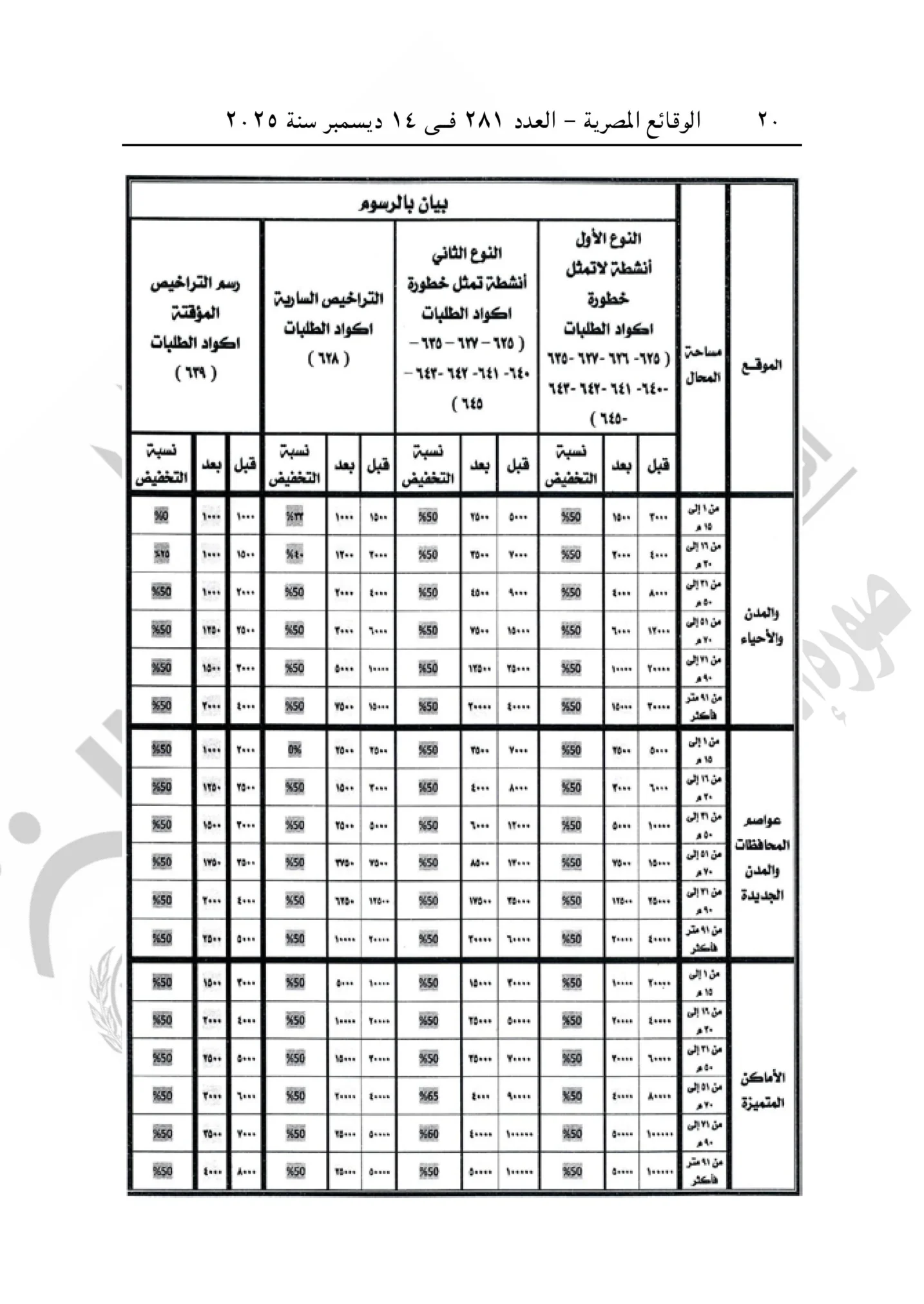 وفيما يلى بيان بالرسوم وفقا للقرار الجديد بالتخفيض:
