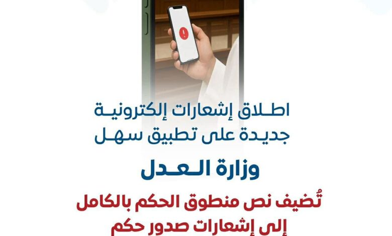 الكويت.. العدل تطلق إشعارات إلكترونية كاملة لنصوص الأحكام عبر تطبيق “سهل”