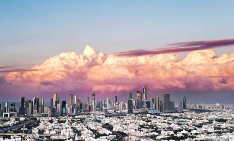 في لقطة بانورامية مميزة، تألقت سماء الكويت اليوم بسحب وردية امتزجت مع أفق المدينة، لترسم مشهدًا بصريًا يعكس جمال العاصمة وتناسقها بين العمران والسماء.