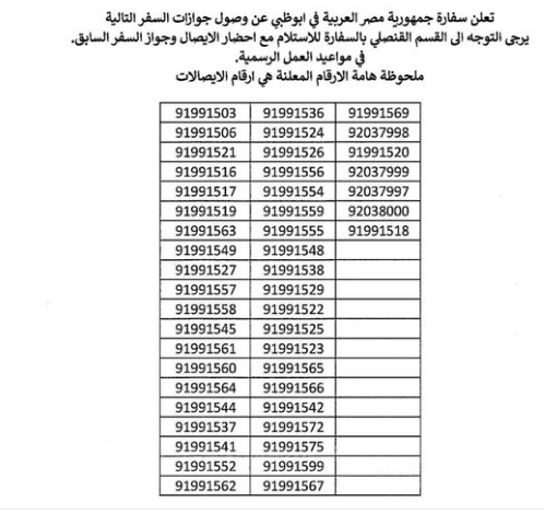 بالأسماء.. سفارة مصر في أبوظبي عن وصول مجموعة من جوازات السفر