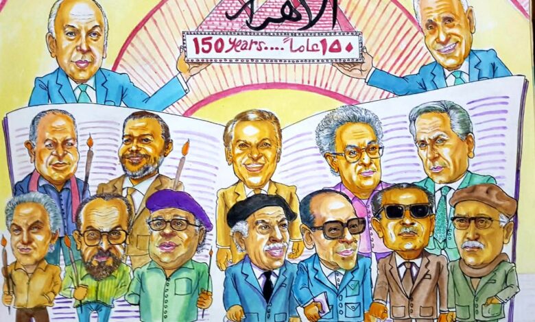 وأكد الكاتب الساخر الفنان عماد جمعة مؤسس ومدير الملتقى، أن الدورة الثامنة تحتفل بمرور 150 عامًا على تأسيس مؤسسة الأهرام العريقة، وخلال فعاليات الافتتاح سيتم تكريم الدكتور محمد فايز فرحات رئيس مجلس إدارة مؤسسة الأهرام، والفنانة التشكيلية أماني زهران مدير إدارة المقتنيات والمعارض الفنية بمؤسسة الأهرام .