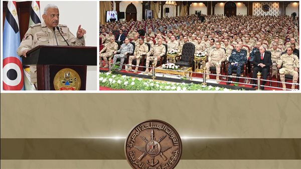 وألقى الفريق أول عبدالمجيد صقر القائد العام للقوات المسلحة وزير الدفاع والإنتاج الحربي كلمة نقل خلالها تحيات وتقدير الرئيس عبدالفتاح السيسي القائد الأعلى للقوات المسلحة واعتزازه بالجهد الذى يبذله رجال القوات المسلحة في صون مقدرات الوطن، مؤكداً على ضرورة قيام القادة والضباط على كافة المستويات بالمحافظة على مستوى الاستعداد القتالي لوحداتهم والاهتمام بالمقاتلين باعتبارهم الركيزة الأساسية لقواتنا المسلحة ليكونوا قادرين على تنفيذ مختلف المهام الموكلة إليهم بكفاءة وإتقان وروح معنوية عالية، وكذلك أهمية التسلح بالوعي المستنير لما تشهده المرحلة الحالية من تحديات للحفاظ على أمن الوطن وسلامة أراضيه.