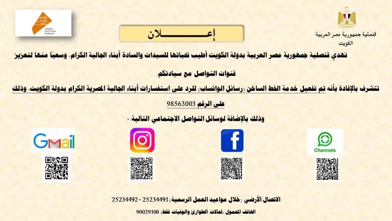 كما أعادت القنصلية نشر الإعلان الخاص بوسائل التواصل المتاحة مع أبناء الجالية على مدار الساعة، وذلك لضمان سرعة الاستجابة لأي استفسارات أو حالات طارئة.