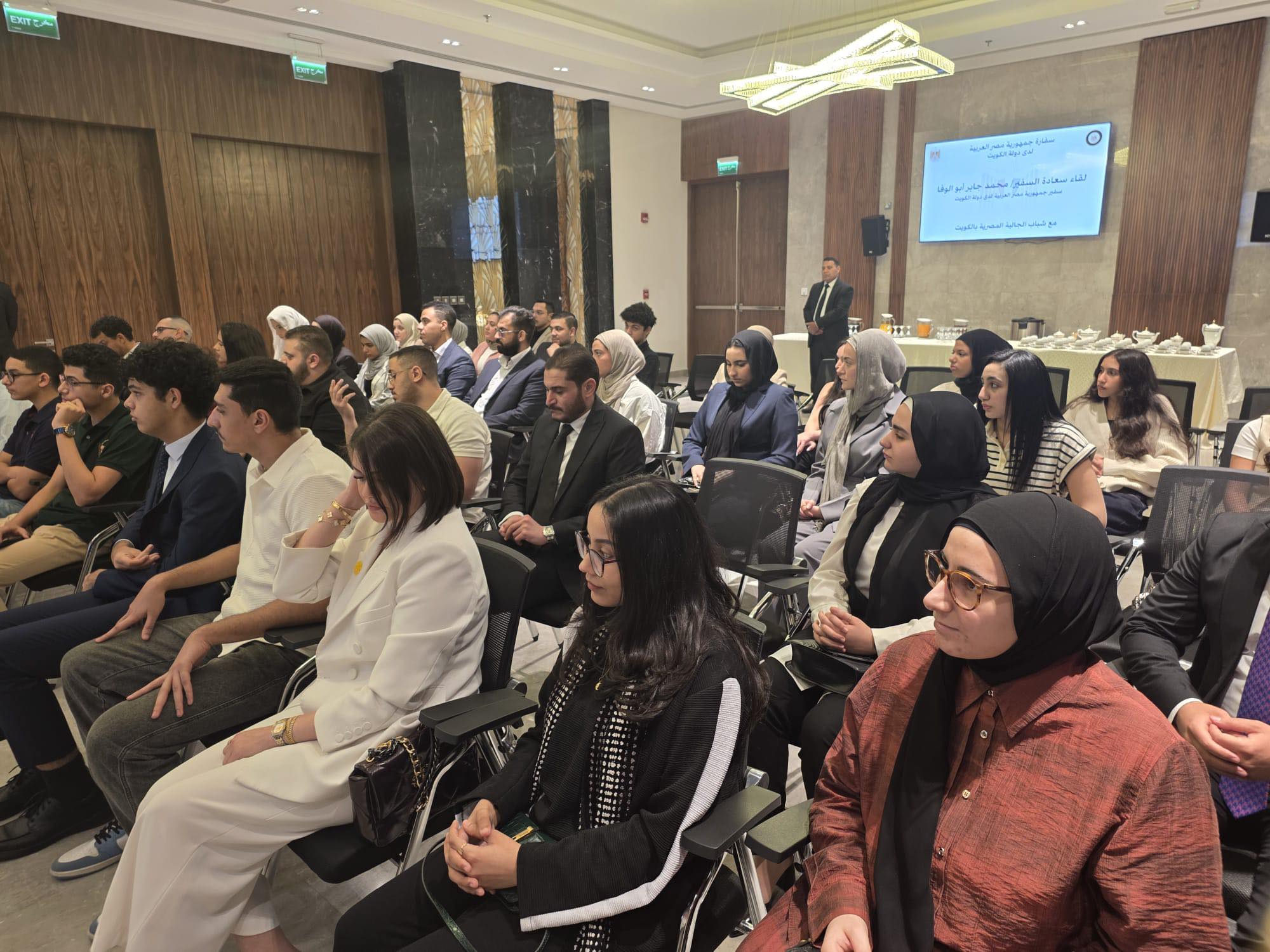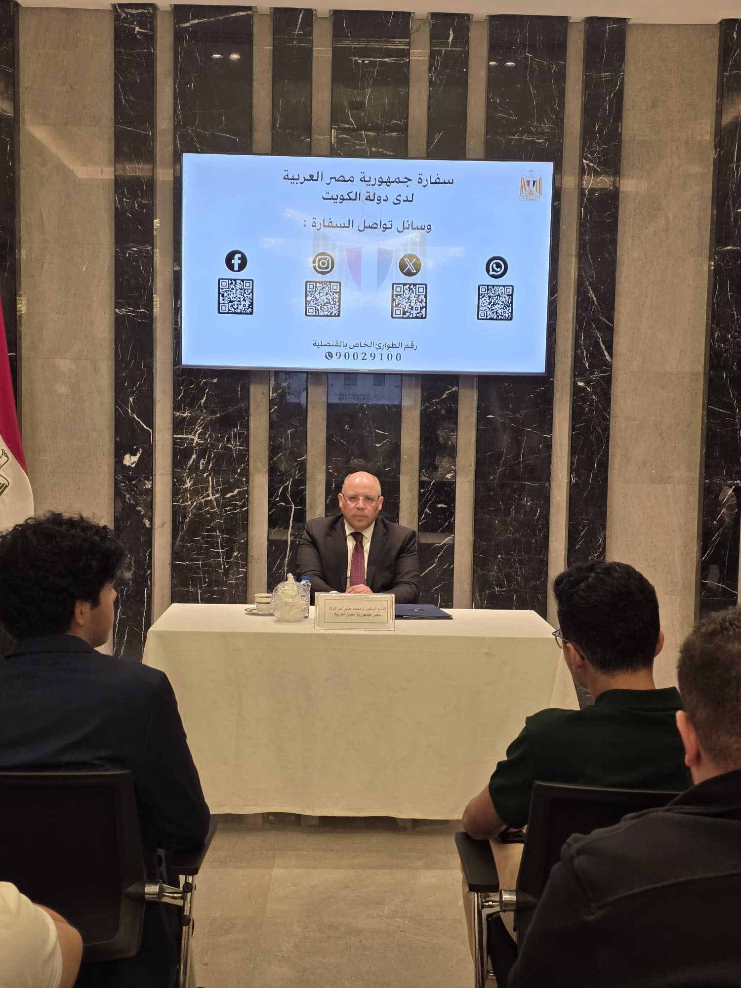 وشدد السفير على التزام السفارة بدعم شباب الجالية المصرية في الكويت، من خلال توفير منصات مستمرة للحوار والتواصل، بما يعزز مشاركتهم الإيجابية والاستفادة من أفكارهم ومبادراتهم.