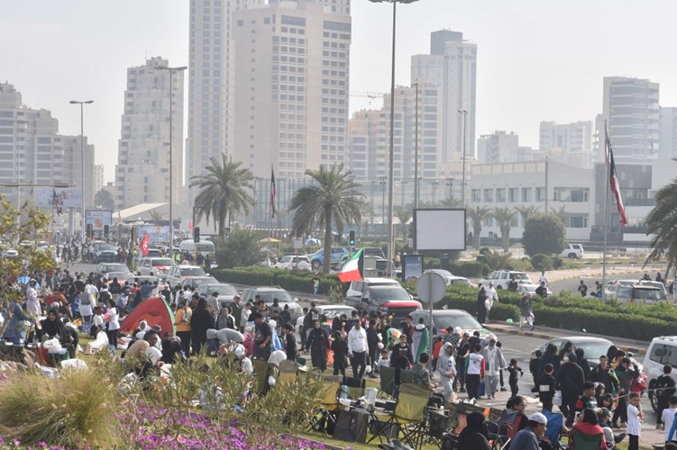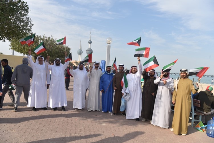 وسط أجواء من الفرحة والبهجة والسرور علت الاعلام ورفرفت الرايات وسط حشد كبير من المواطنين والمقيمين في الكويت