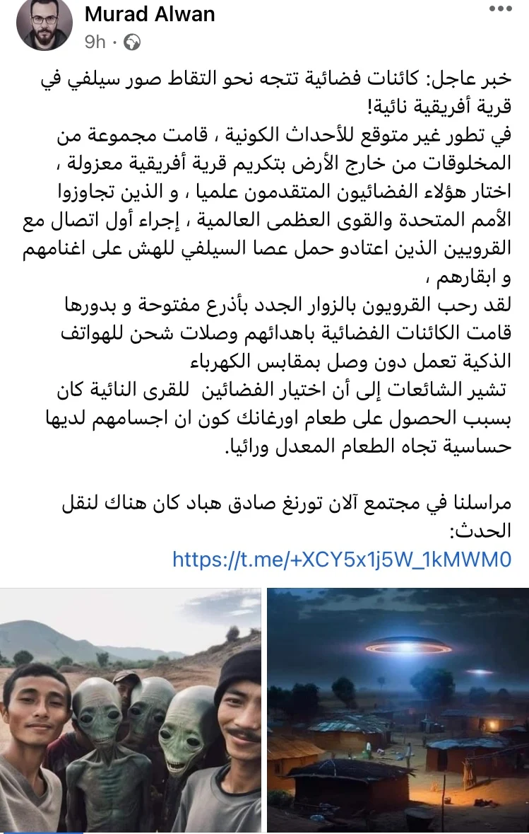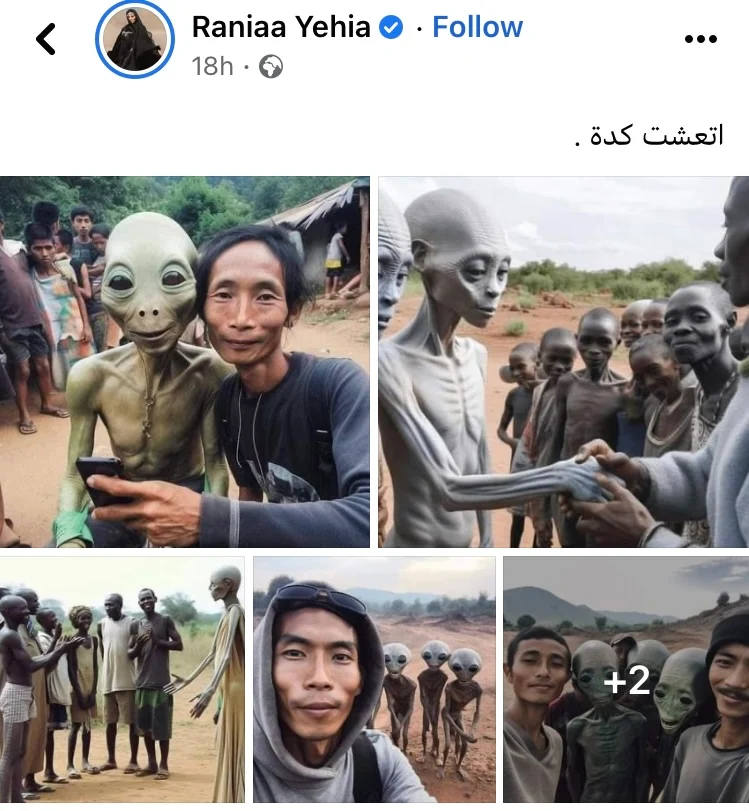 وتداول عدد واسع من رواد موقع التواصل الاجتماعي فيسبوك، خلال الساعات القليلة الماضية مجموعة صور يظهر فيها عدد من الأشخاص رفقة ما اعتبروه “كائنات فضائية”.