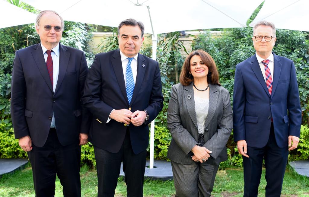 وكان في استقبال سيادتها ووفد المفوضية الأوروبية بمقر المركز، السيد/ فرانك هارتمان السفير الألماني بالقاهرة، والسيد/ ألكساندر سوليجا مدير الوكالة الألمانية للتعاون الدولي GIZ بالقاهرة، والسيد/ أندرياس أدريان منسق قطاع التعليم الفني وسوق العمل بالوكالة الألمانية للتعاون الدولي GIZ بالقاهرة، والدكتورة سحر علي المسئول التنفيذي لمشروع “الهجرة من أجل التنمية” في مصر، والسيدة/ شهيرة واصف مسئولة ملف الهجرة بالوكالة، وكذلك عدد كبير من أعضاء المركز.
