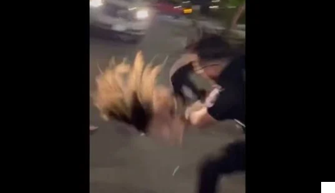 توثق اللقطات المتداولة على تويتر مجموعة من النساء يتقاتلن خارج ناد اجتماعي قبل أن يتم إسقاط إحداهن ومهاجمتها بعنف من قبل أخرى.