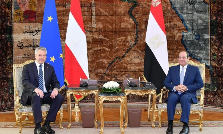 استقبل الرئيس عبد الفتاح السيسى، مستشار النمسا "كارل نيهامر" فى قصر الاتحادية.