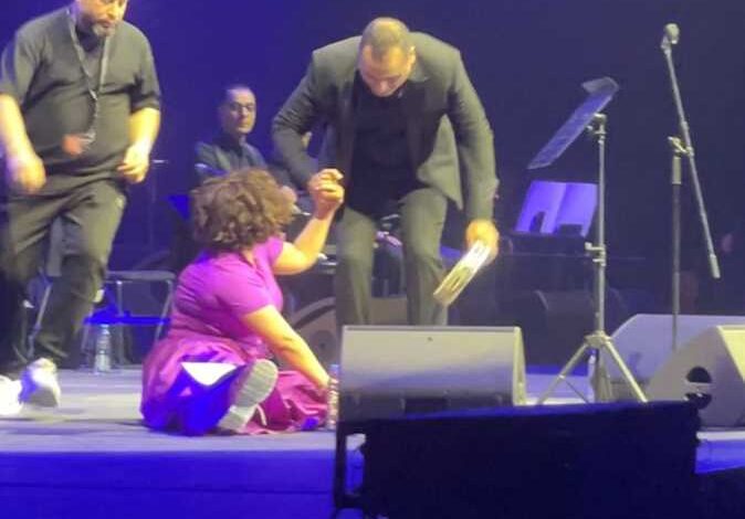 وسقطت شيرين عبدالوهاب على المسرح، حينما كانت ترجع للوراء بسبب السماعات، وقالت بعد سقوطها: «بكرة السوشيال ميديا هتمسك في لحظة وقوعي على المسرح.. بس ميقعش إلا الشاطر».