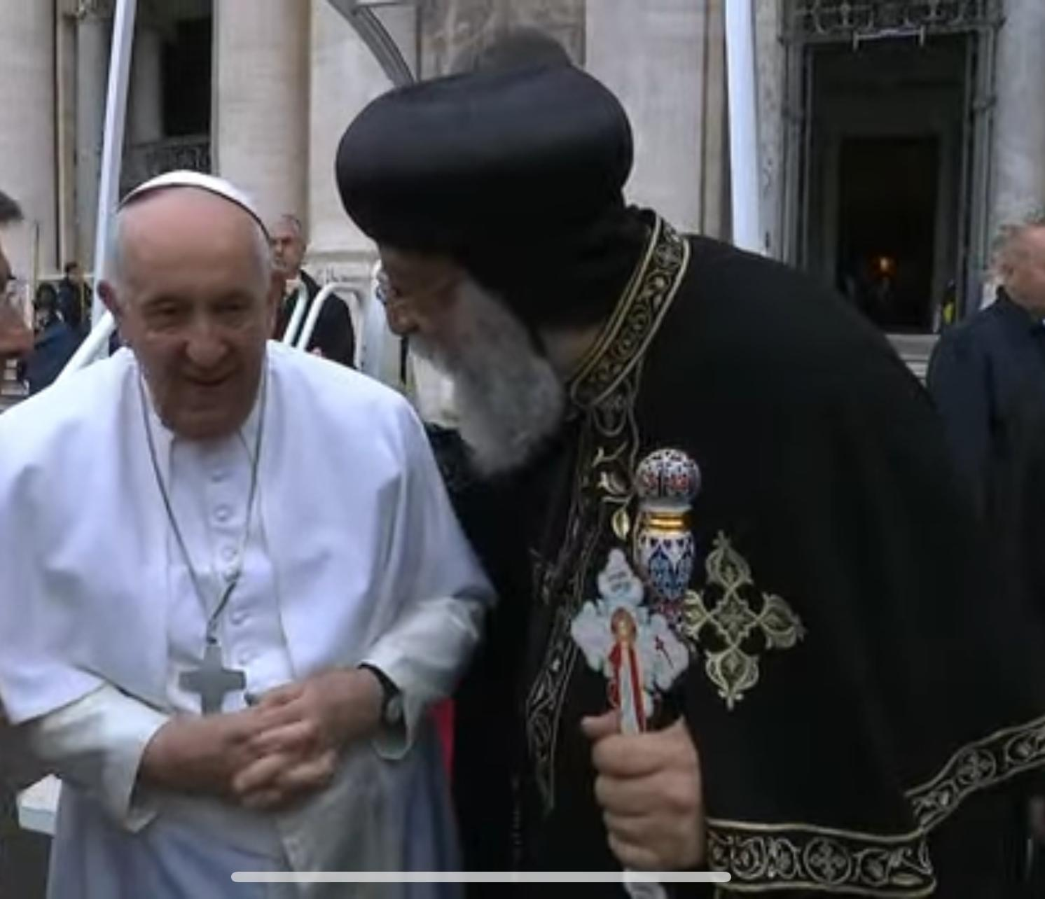 التقى قداسة البابا تواضروس الثاني بابا الإسكندرية وبطريرك الكرازة المرقسية، صباح اليوم قداسة البابا فرنسيس بابا الڤاتيكان في المقابلة العامة الأسبوعية التي يعقدها في ساحة القديس بطرس الرسول بالڤاتيكان.