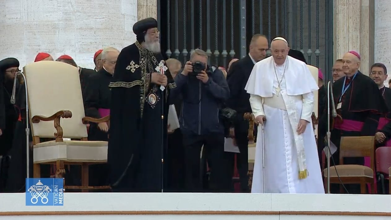 وعقب انتهاء الكلمتين طلب قداسة البابا فرنسيس من قداسة البابا تواضروس أن يتوجه لمباركة الشعب المتواجد في ساحة القديس بطرس.