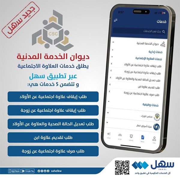 أعلن ديوان الخدمة المدنية عن انطلاق 5 خدمات جديدة عبر تطبيق ” سهل ” وذلك حسب البيان التالي :