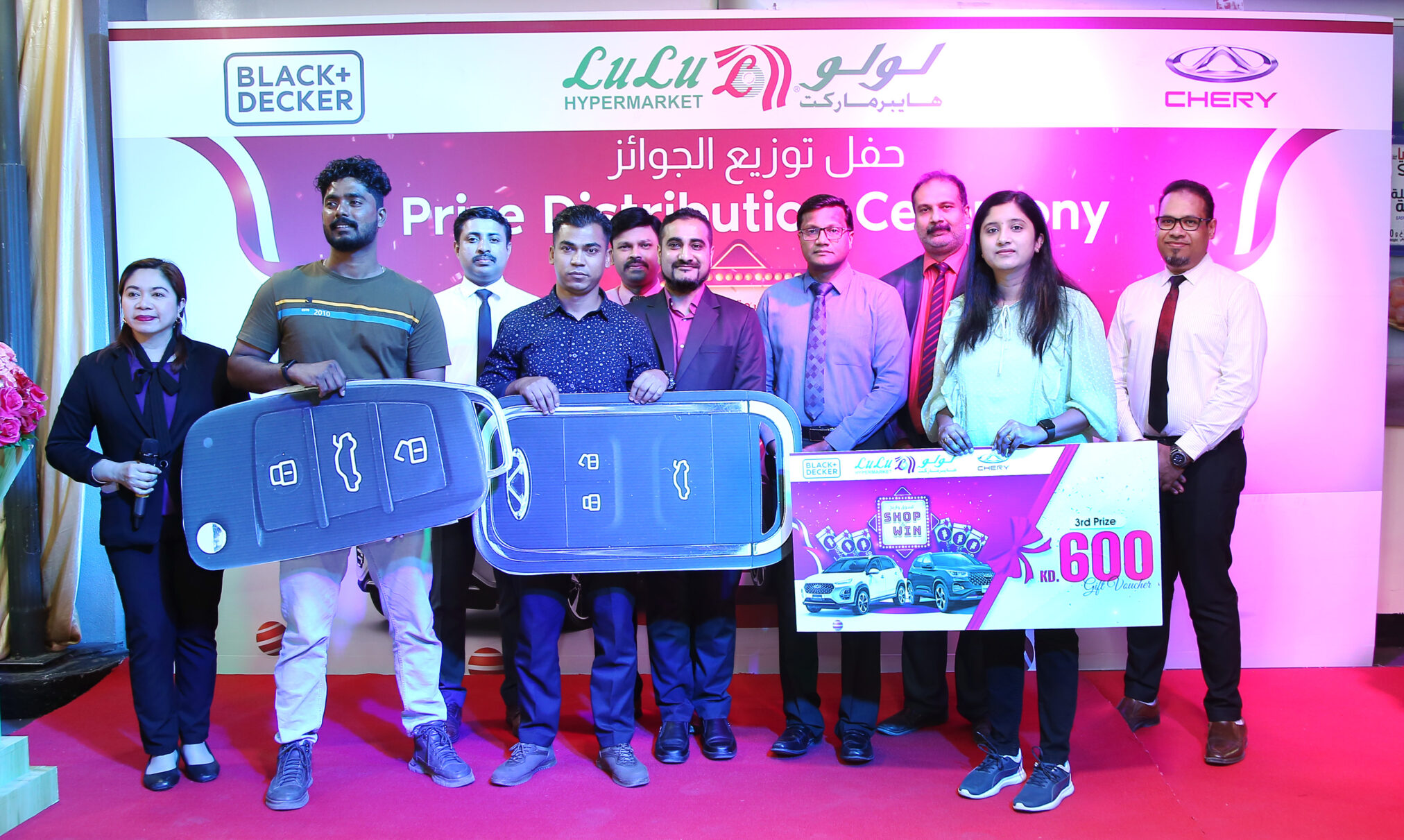 يسر شركة لولو هايبر ماركت وبلاك آند ديكر أن يعلنا عن نجاح حملة “تسوق وإربح”، حيث تم توزيع الجوائز الكبرى في حفل رائع. شارك العديد من الزبائن في الحملة التي استمرت من 8 فبراير إلى 21 مارس عام 2023.