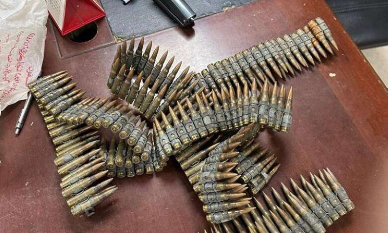 وكانت محملة بأثاث منزلي وعفش، عُثر على 250 طلقة رشاش وبدلات عسكرية، فتم إحراز المضبوطات وإحالته لجهات الاختصاص للتحقيق.