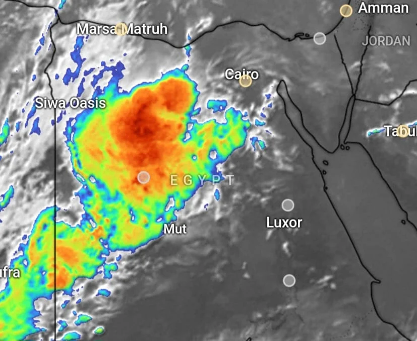 كشفت هيئة الأرصاد الجوية عن حالة من عدم اسقرار الأحوال الجوية وفق آخر صور لـ الأقمار الصناعية، التي أشارت إلى غطاء سحابي كثيف من السحب المنخفضة والمتوسطة والعالية يغطي الصحراء الغربية يصاحبه سقوط أمطار متفاوتة الشدة تكون رعدية أحيانا.
