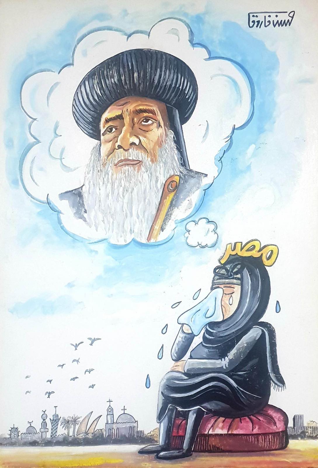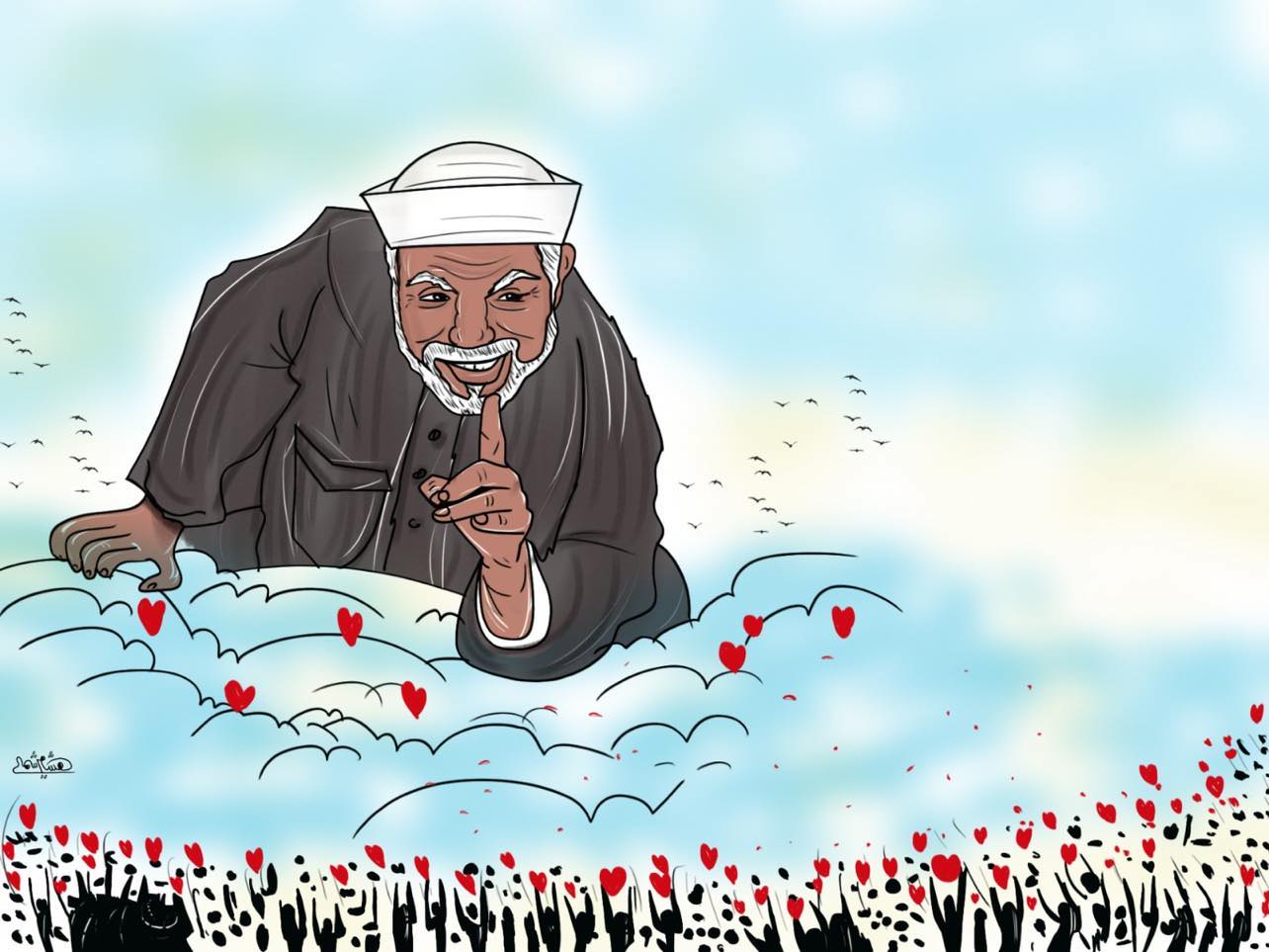وتابع جمعة: كما احتفت بعض الرسوم بفضيلة الإمام الدكتور أحمد الطيب شيخ الجامع الأزهر وكذلك قداسة البابا شنودة الذي أحبه المصريون ورددوا كلماته رحمه الله والذي كانت تربطه علاقات صداقة قوية مع فضيلة الإمام الشيخ الشعراوي وكانوا يتبارون في ارتجال الشعر.
