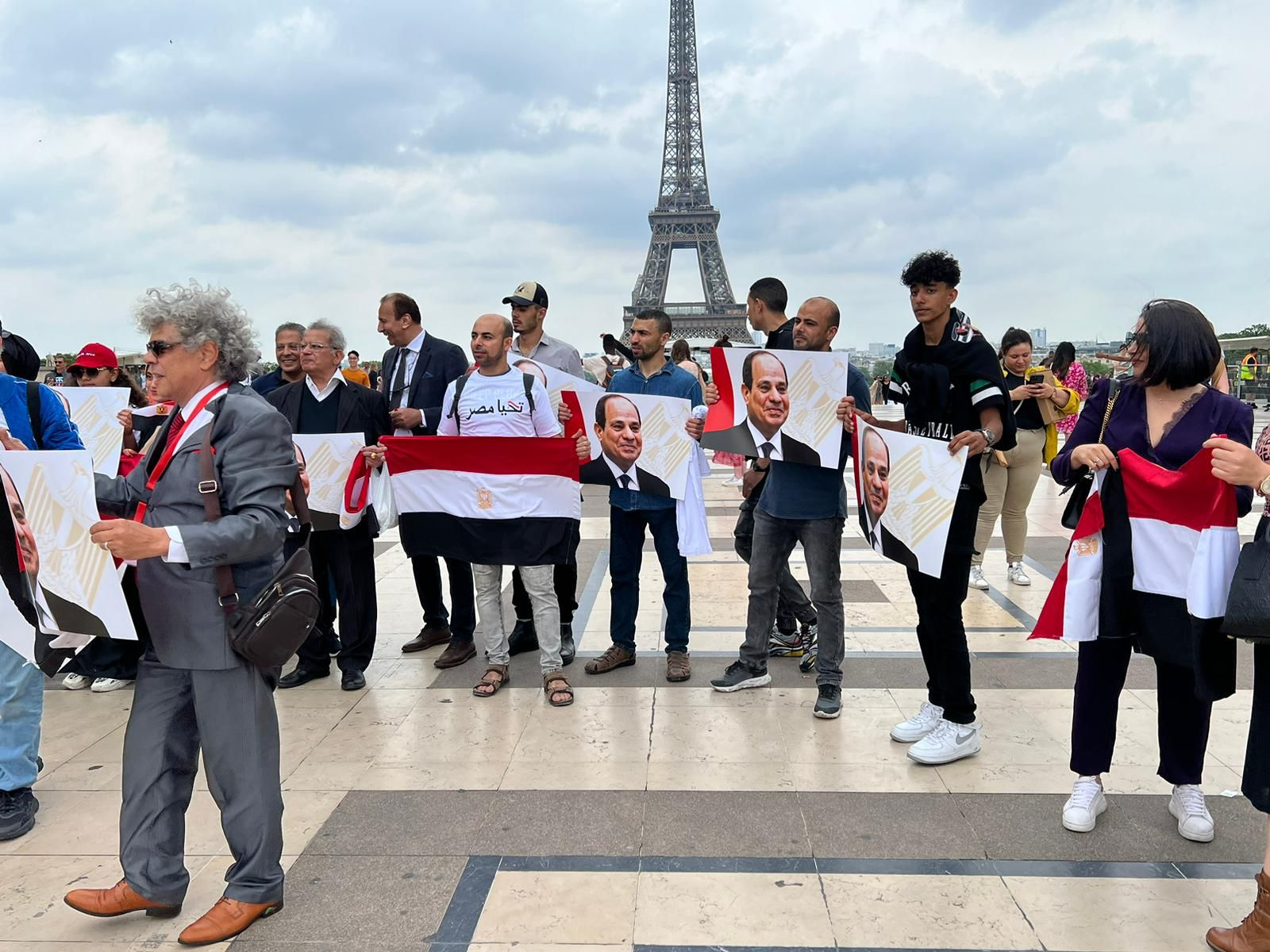 الجالية المصرية في فرنسا تحتشد لاستقبال الرئيس السيسي بباريس.. صور